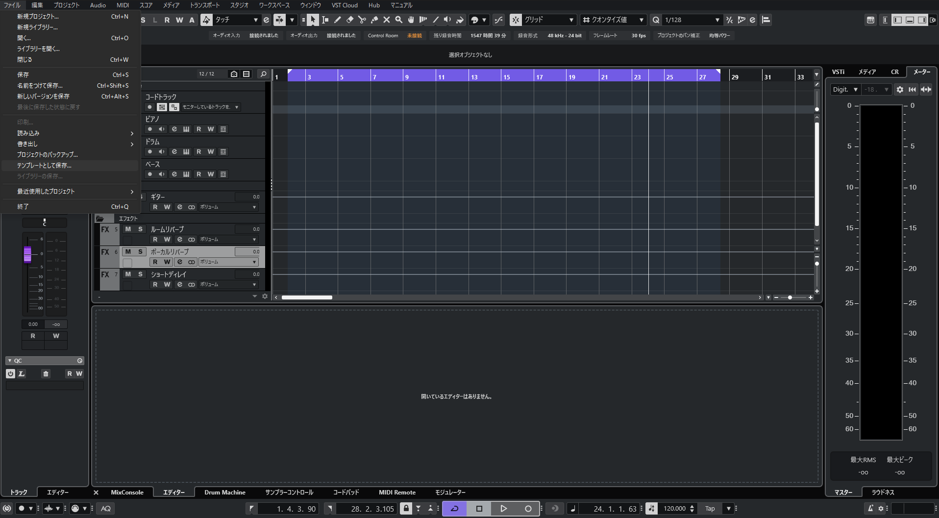 まずは自分が曲作りの時によく使うプラグインなどを読み込みましょうっていう感じです。