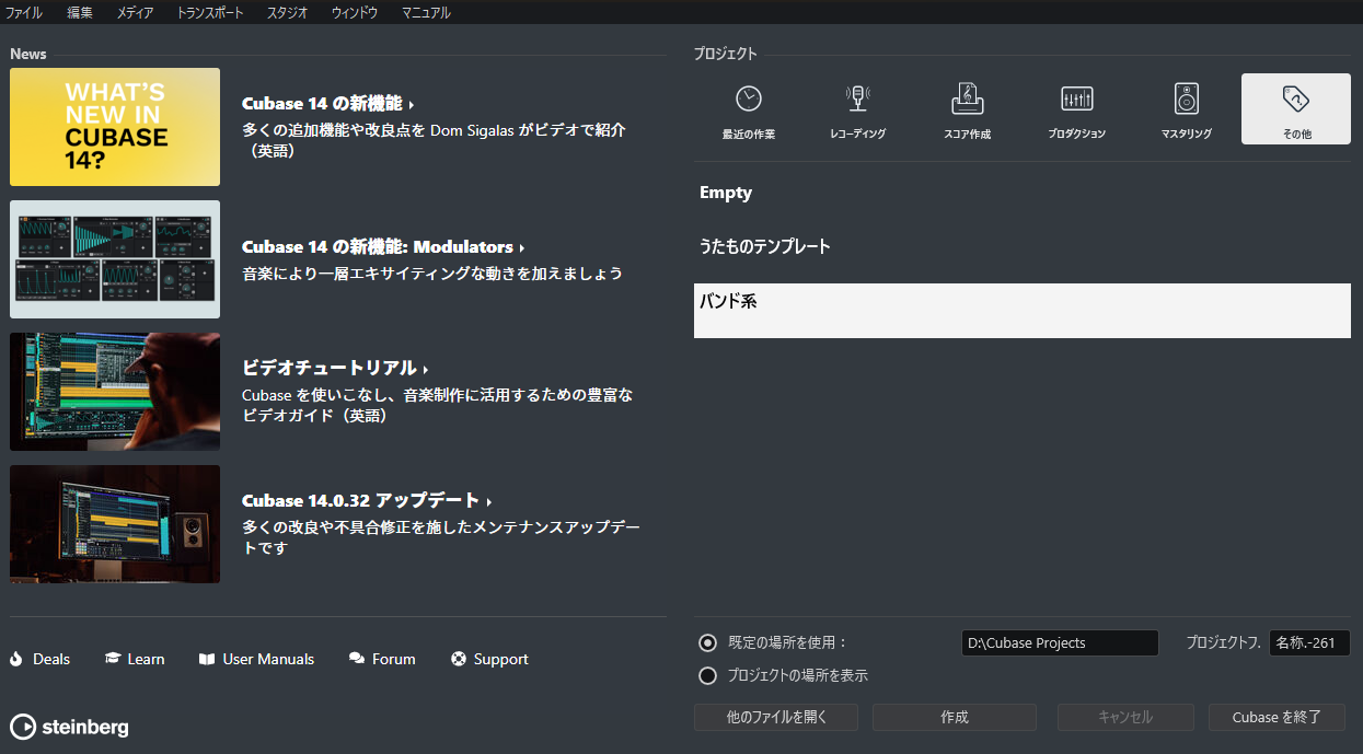 cubaseにはテンプレート機能っていうものがあるみたいですね。